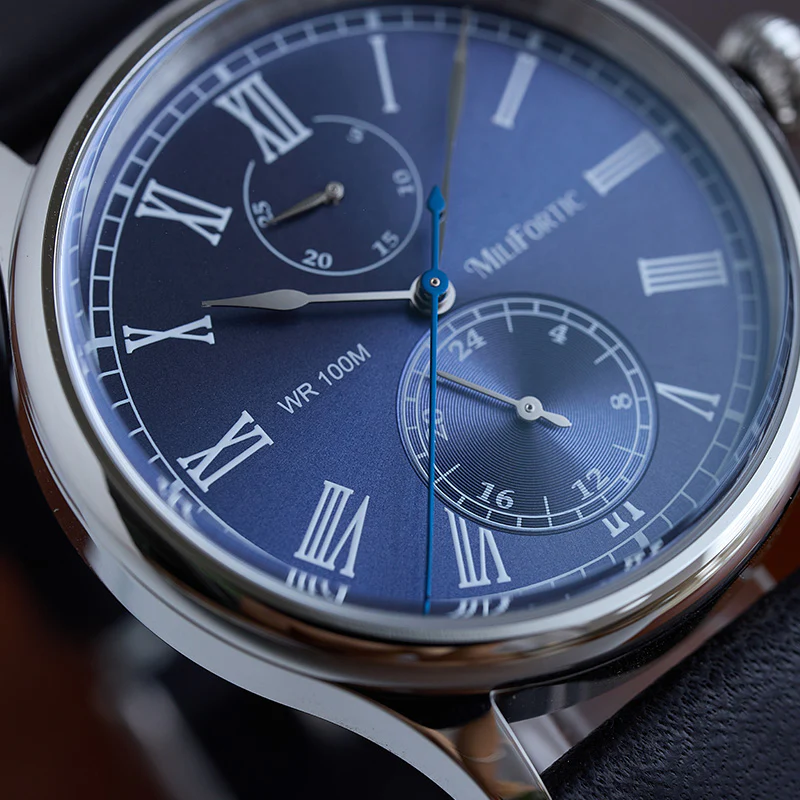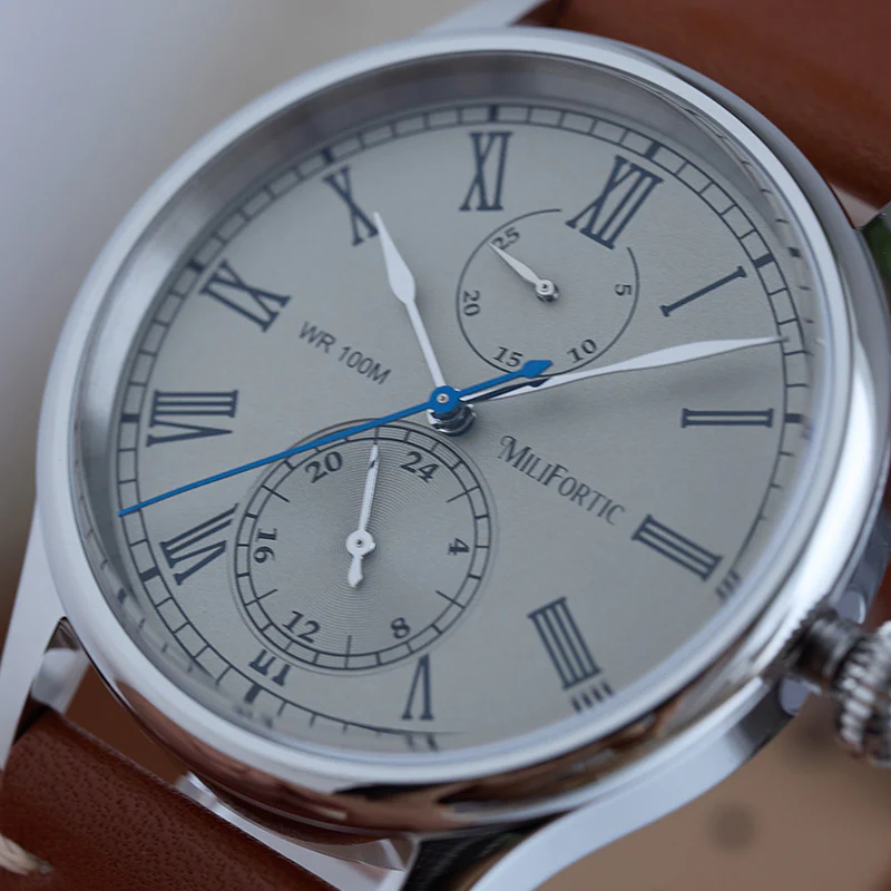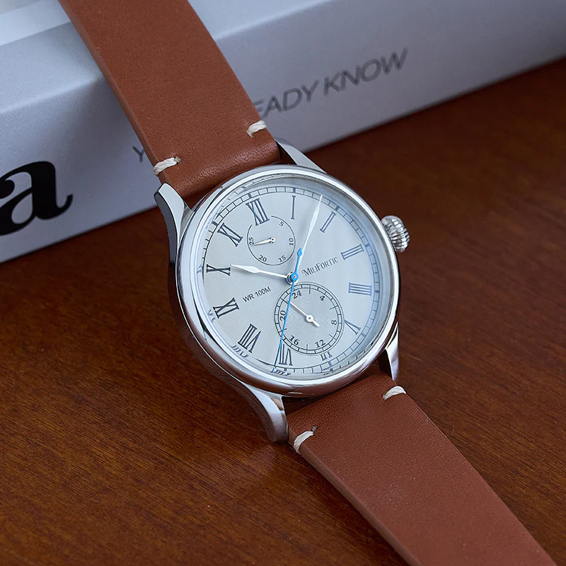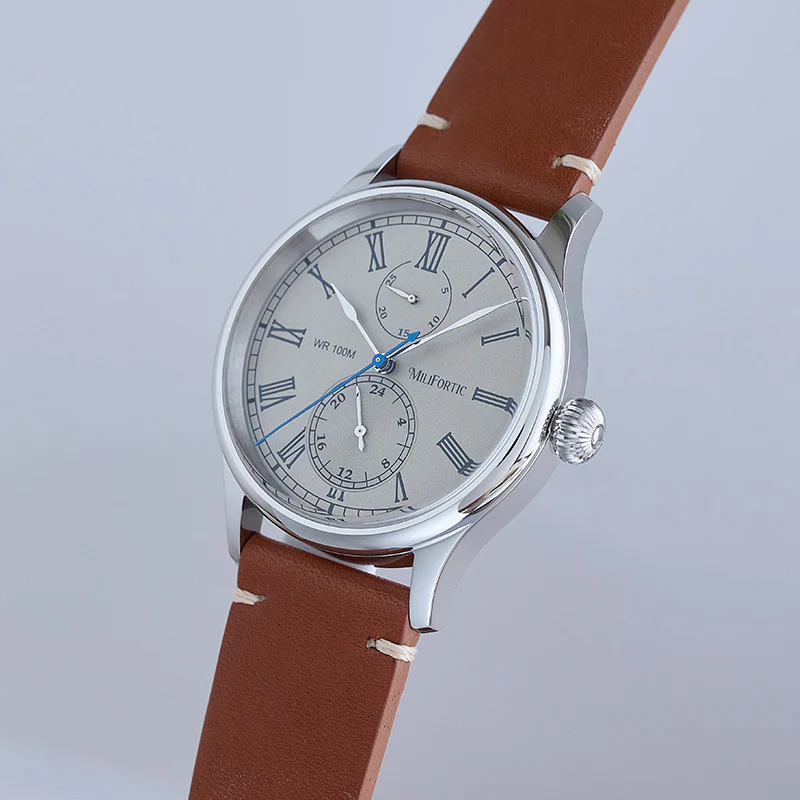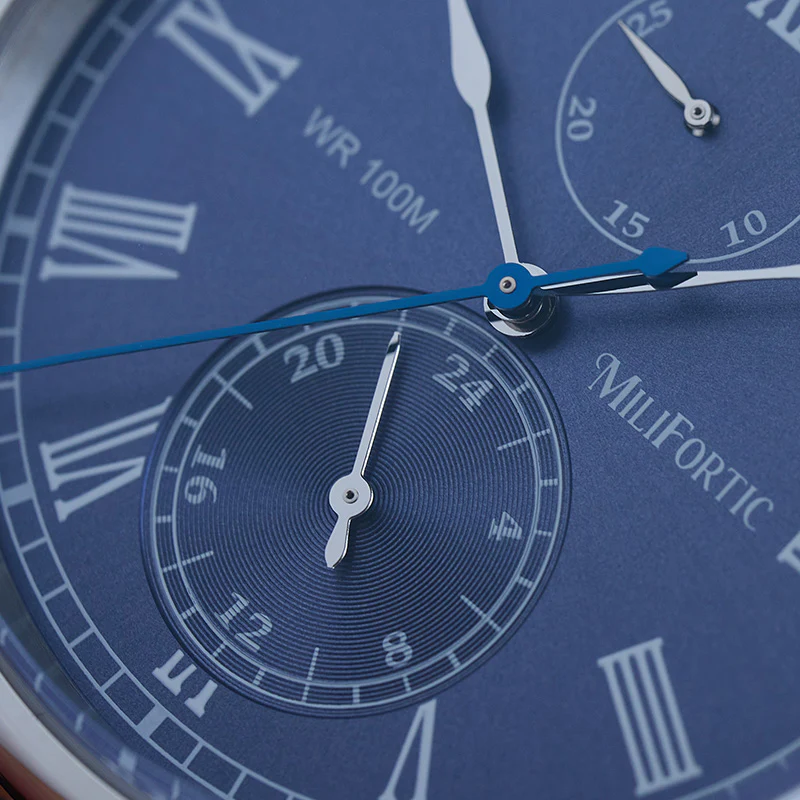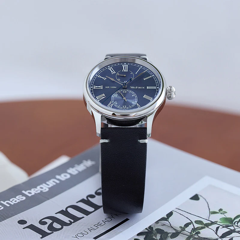A refined take on vintage chronograph styling, the Milifortic Multi-eye Quartz Dress Watch pairs Roman numerals and a blued seconds hand with a balanced dual-subdial layout.