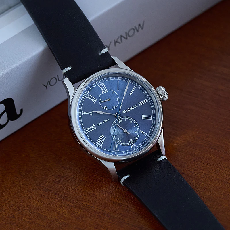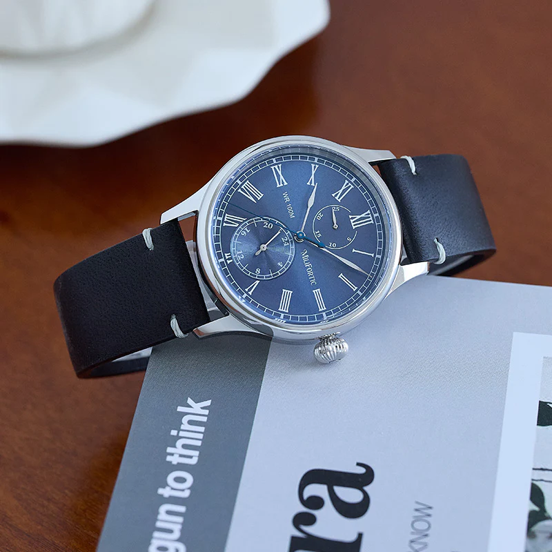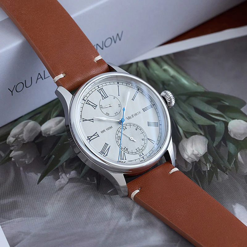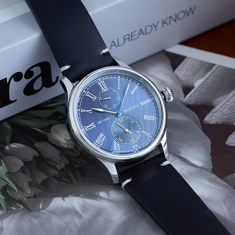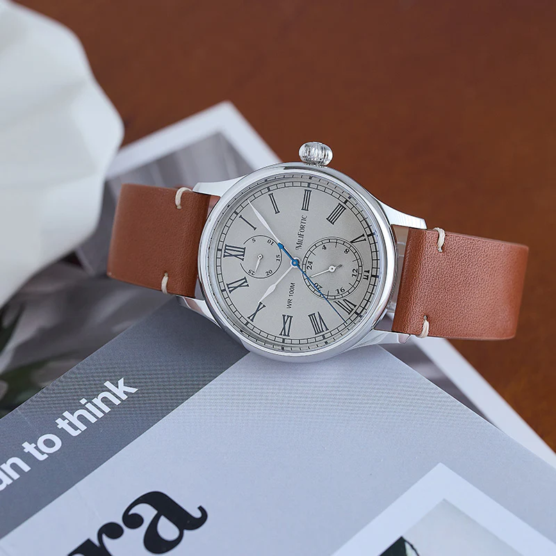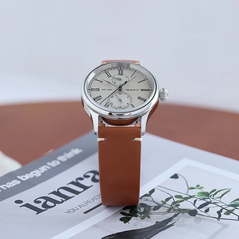 A refined take on vintage chronograph styling, the Milifortic Multi-eye Quartz Dress Watch pairs Roman numerals and a blued seconds hand with a balanced dual-subdial layout.